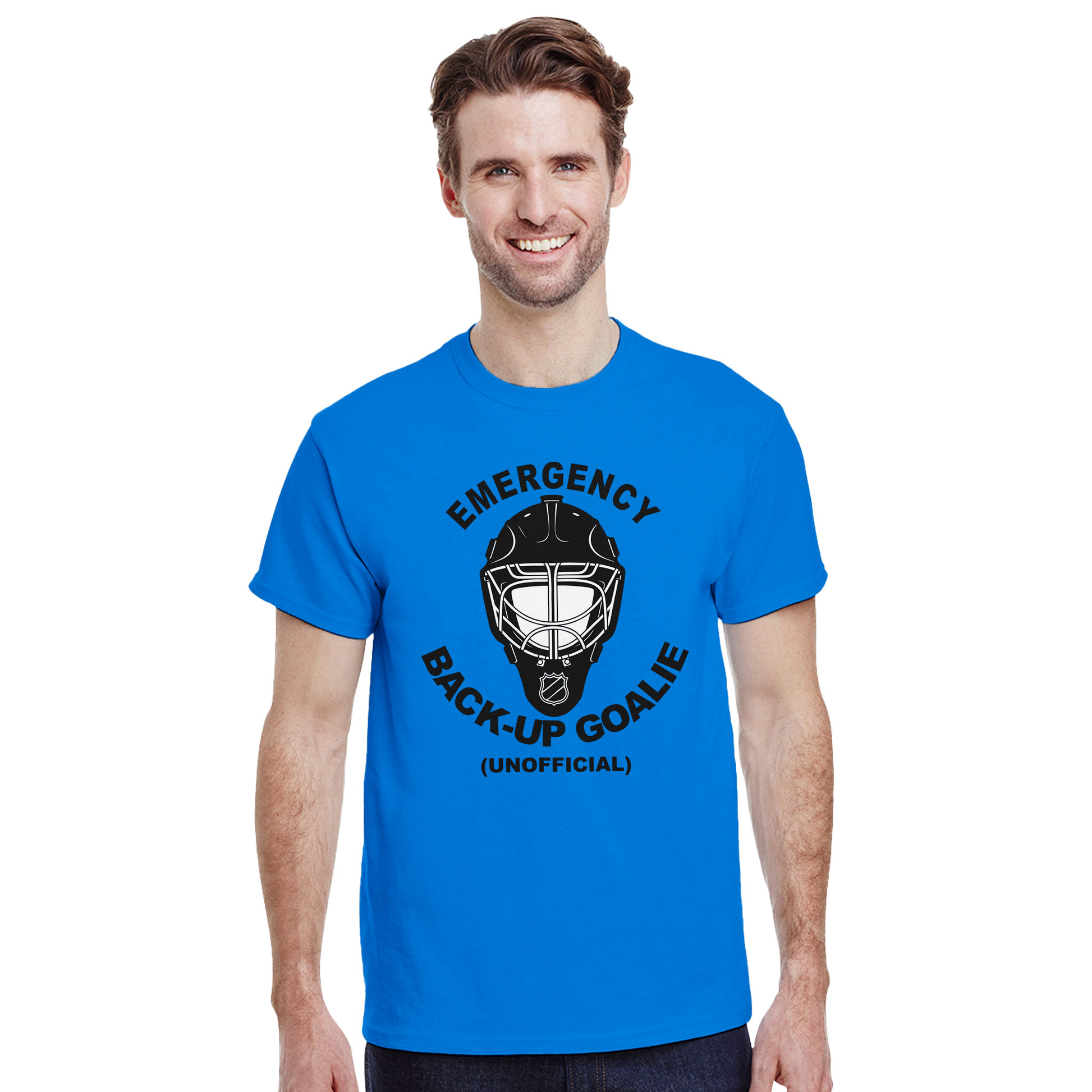 This t-shirt is not just a piece of clothing; it's a statement piece perfect for game day, casual outings, or simply showcasing your love for hockey with a lighthearted twist. Order now to score this fun tee and let the world know who you are – the NHL emergency back-up goalie (unofficial)!