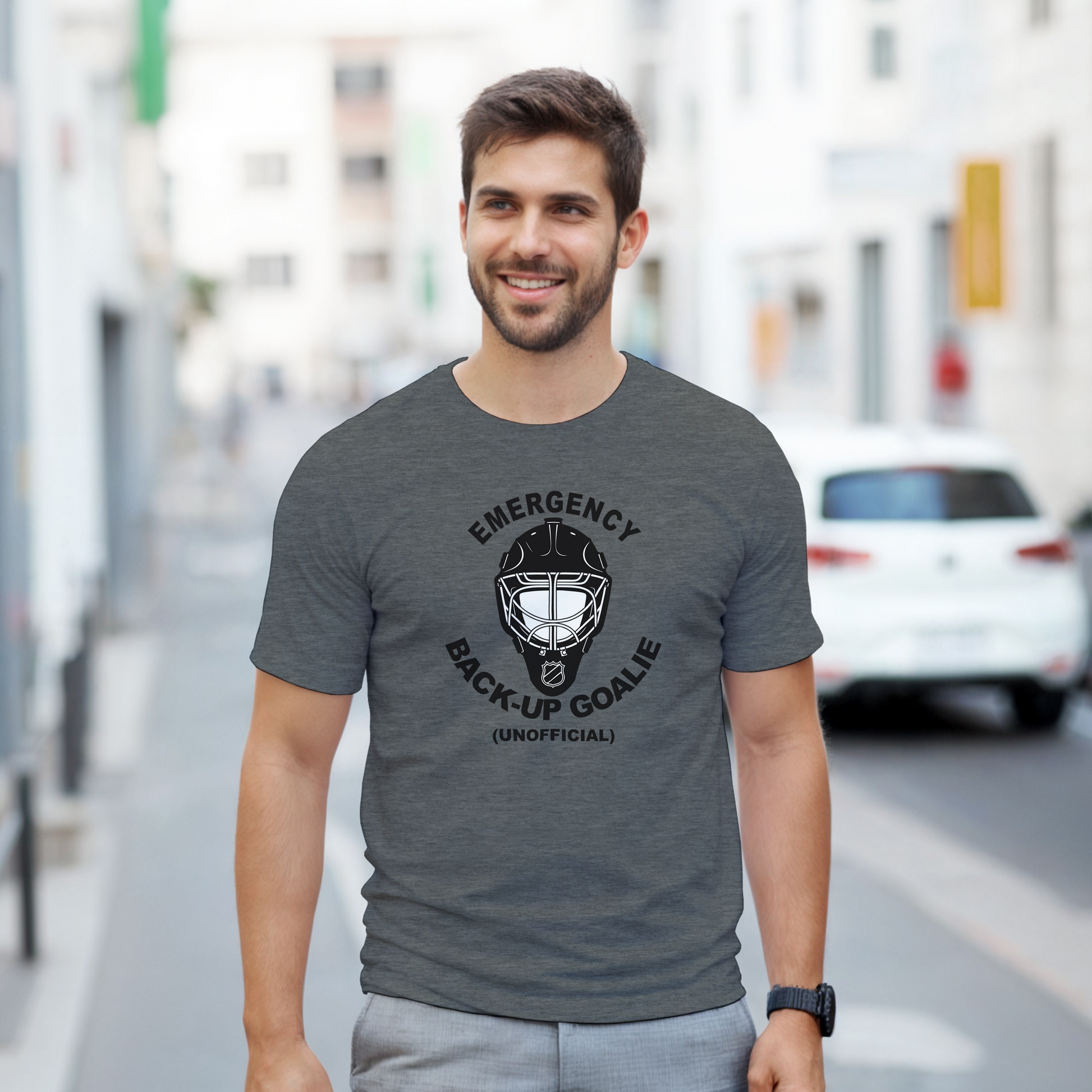 Show your love for the game and your sense of humor with our Emergency Back-Up Goalie (Unofficial) T-Shirt. This playful design is perfect for those who appreciate the thrill of hockey and the unexpected roles players sometimes find themselves in!